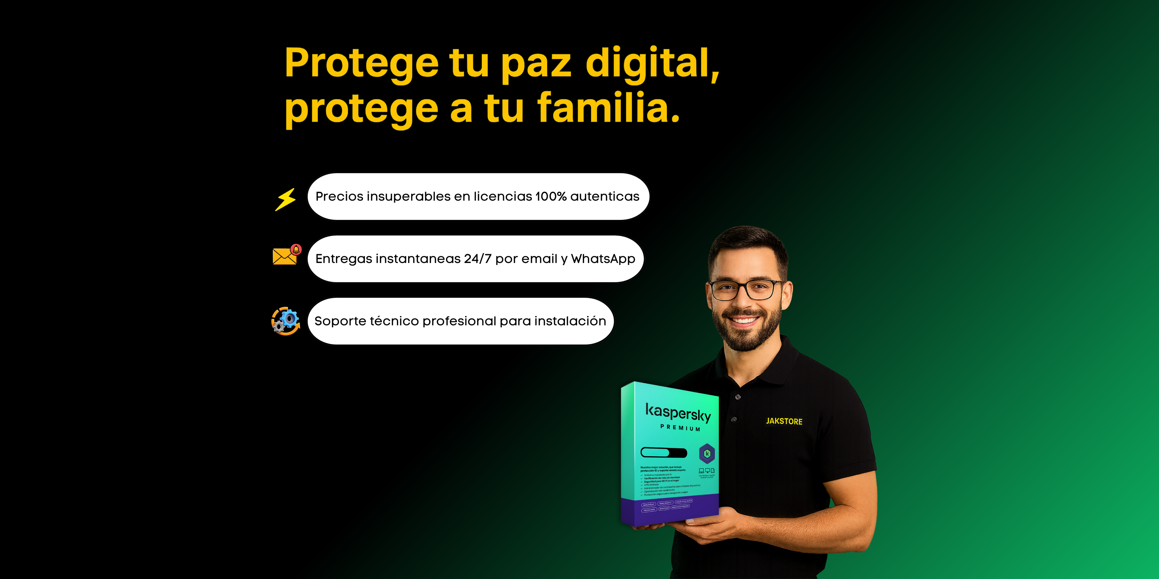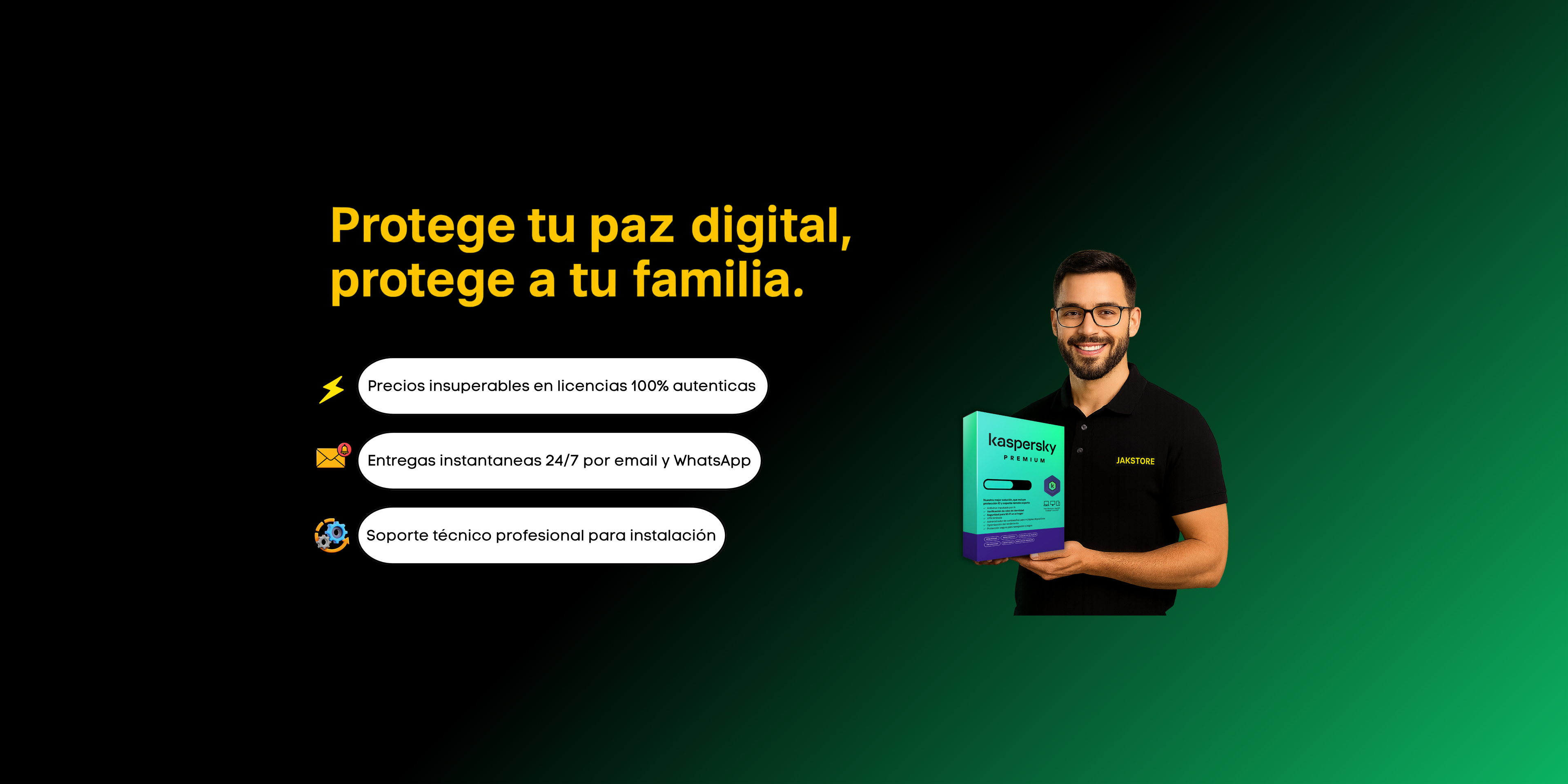 En Jak Store nos esforzamos por ofrecer precios bajos durante todo el año en licencias originales para tus softwares favoritos como Kaspersky, Microsoft 365 y Bitdefender.