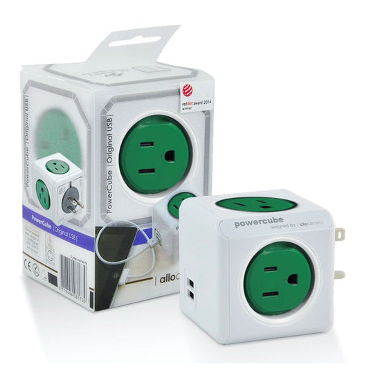Multitoma Cubo Powercube 4 Salidas + 2 Puertos Usb Verde