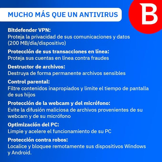 Bitdefender Total Security 5 Dispositivos 1 Año + Multitoma 4 Entradas 2usb